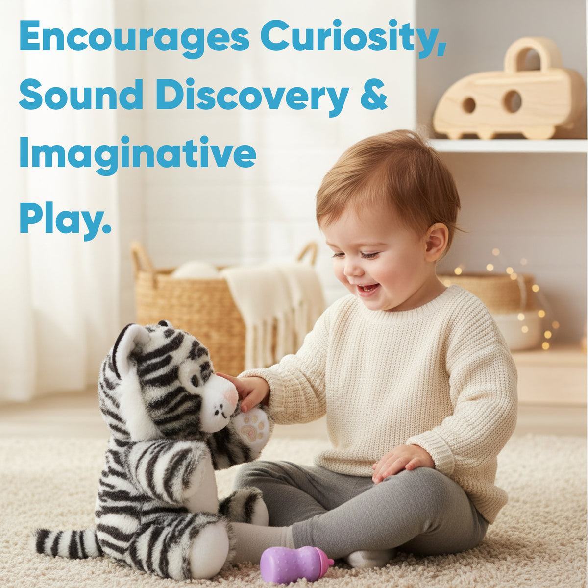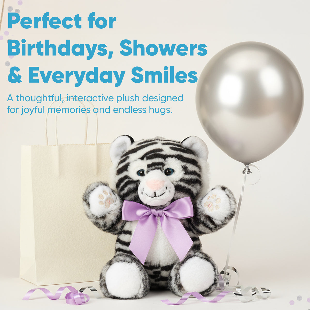 Meet the next generation of comfort — a full-bodied plush tiger designed to soothe, engage, and grow with your child.