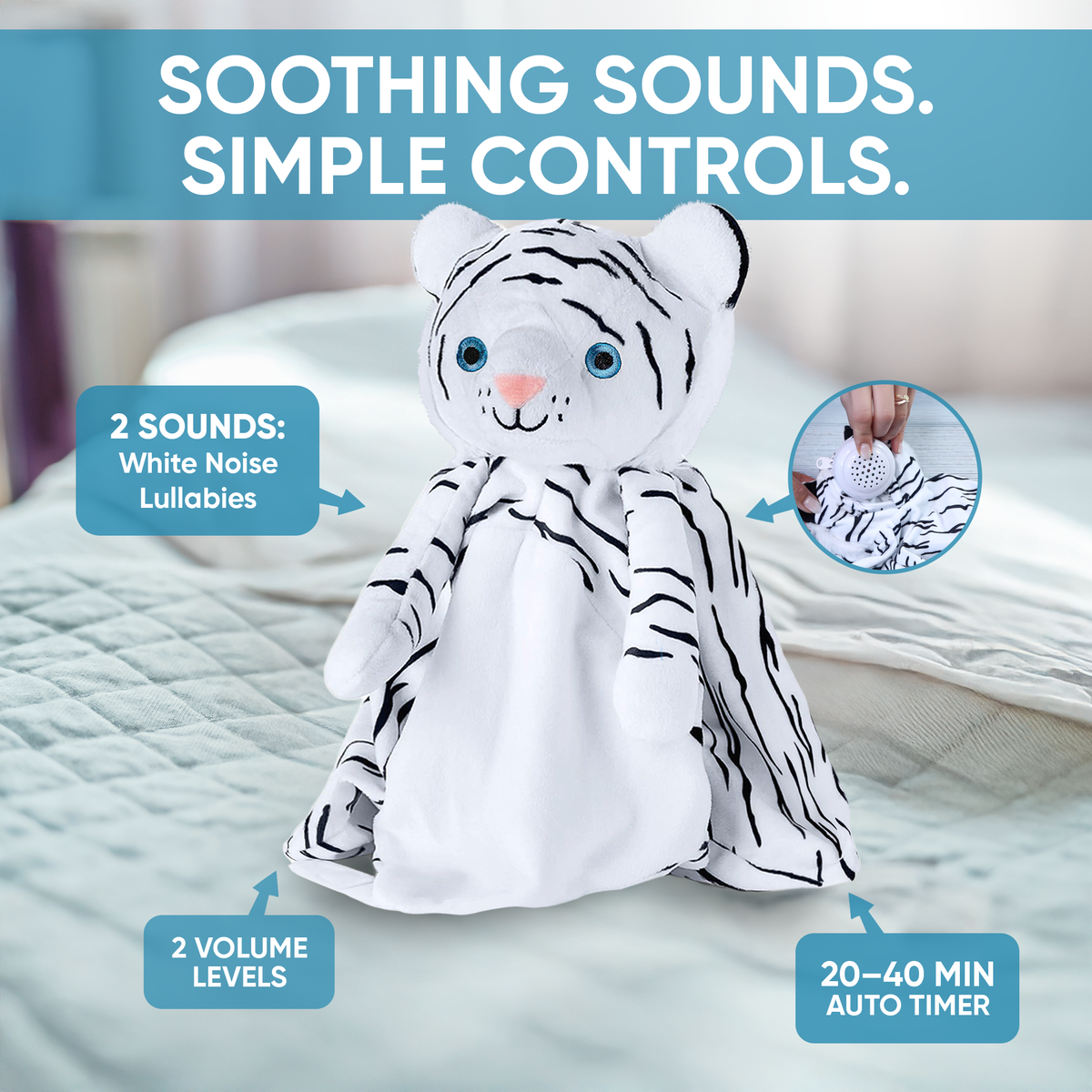 With built-in white noise and a classic lullaby sound, this comforting companion helps your little one settle more easily at bedtime, nap time, or during moments of separation. Whether at home, in the car, or on daycare drop-offs, it's a familiar friend that soothes and reassures.
